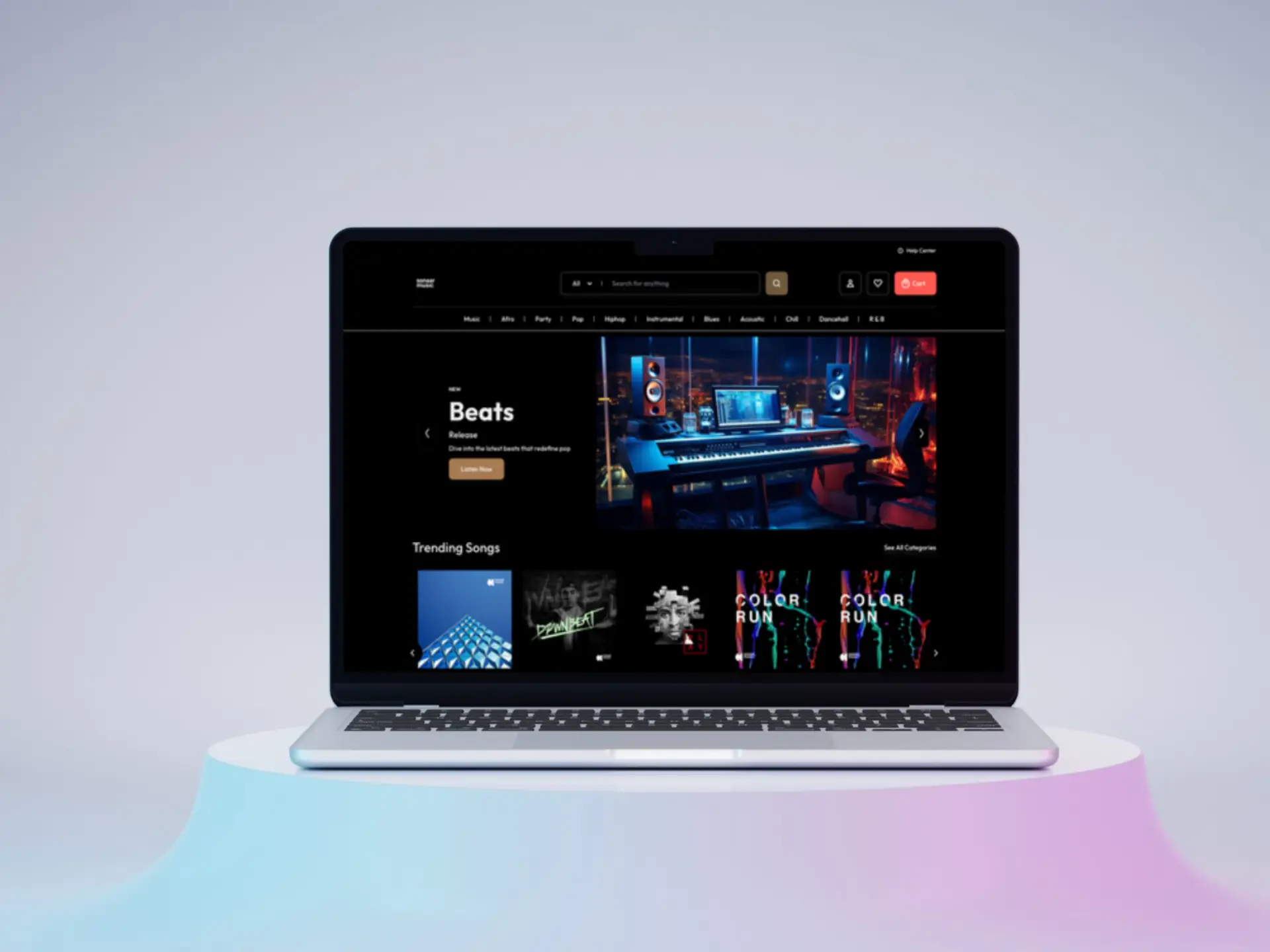 This project was designed as a digital marketplace for music producers and beatmakers to showcase, upload, and sell their beats. The goal was to create a platform that was not only user-friendly but also scalable, allowing multiple vendors to manage their own catalogs while giving listeners a seamless experience browsing, previewing, and purchasing music.